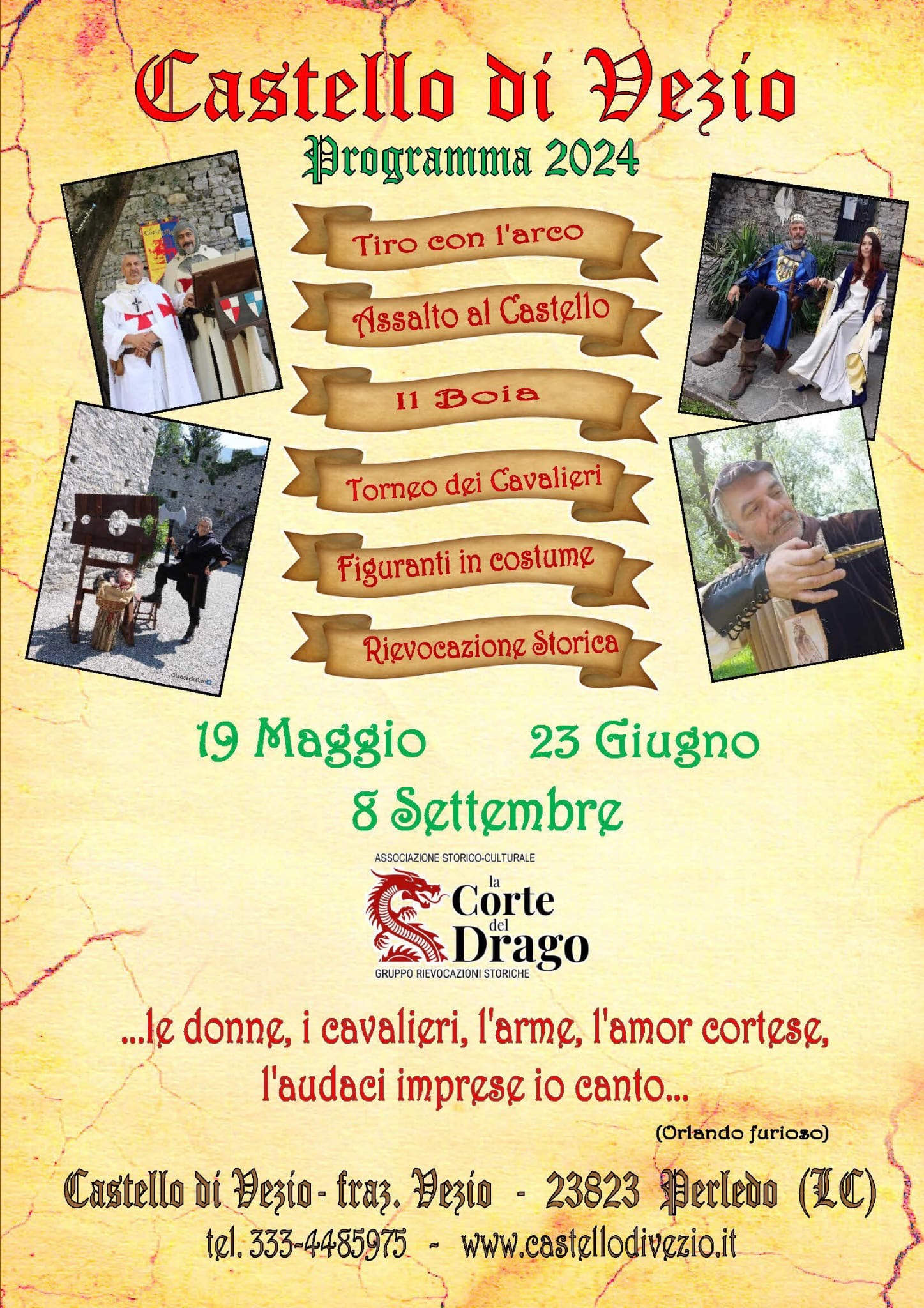 Programmate le date delle rievocazioni storiche, giochi per bambini, combattimenti, figuranti in costume e tiro con l'arco vi aspettano al castello!