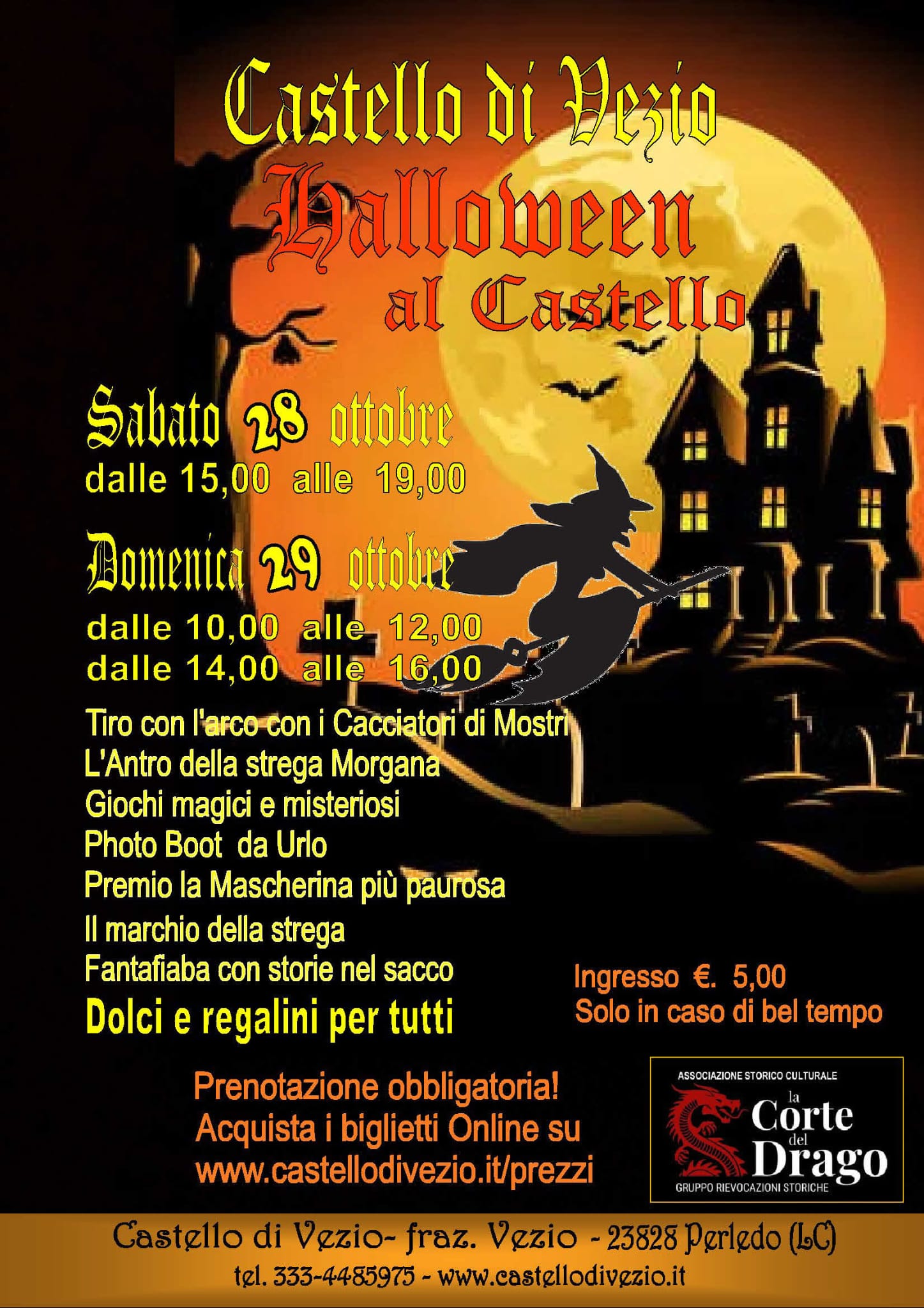prenotazione obbligatoria su www.castellodivezio.it/prezzi