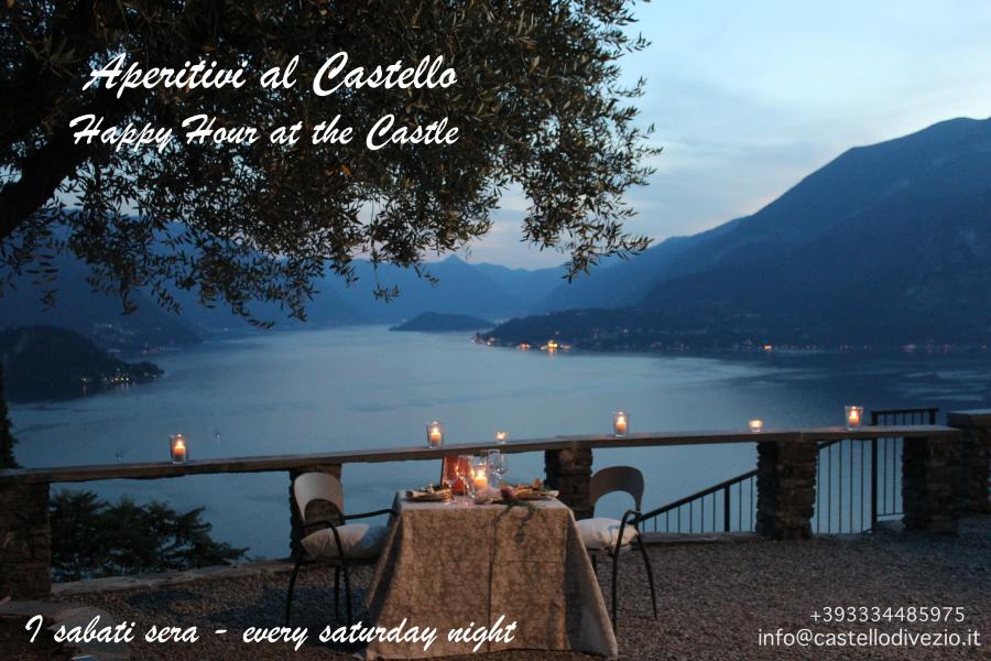 Si organizzano aperitivi serali sulla terrazza vista lago all’interno del Castello di Vezio, i sabati sera di giugno, luglio e agosto, fino al tramonto.